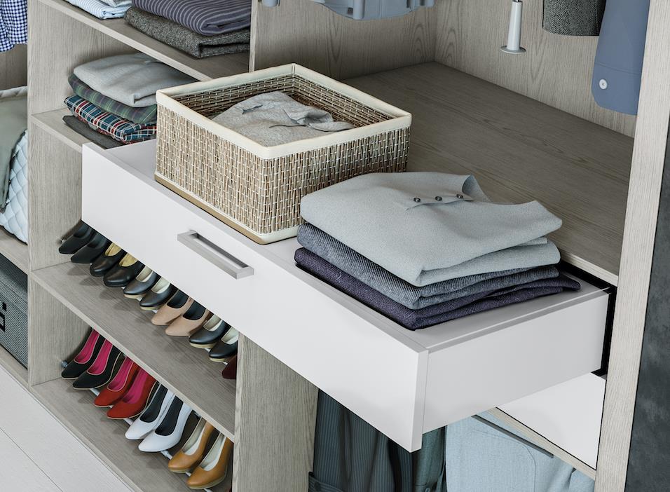 Ce système est particulièrement recommandé lorsque les tiroirs sont placés derrière les portes coulissantes, évitant tout risque que les portes n’accrochent les poignées des tiroirs.