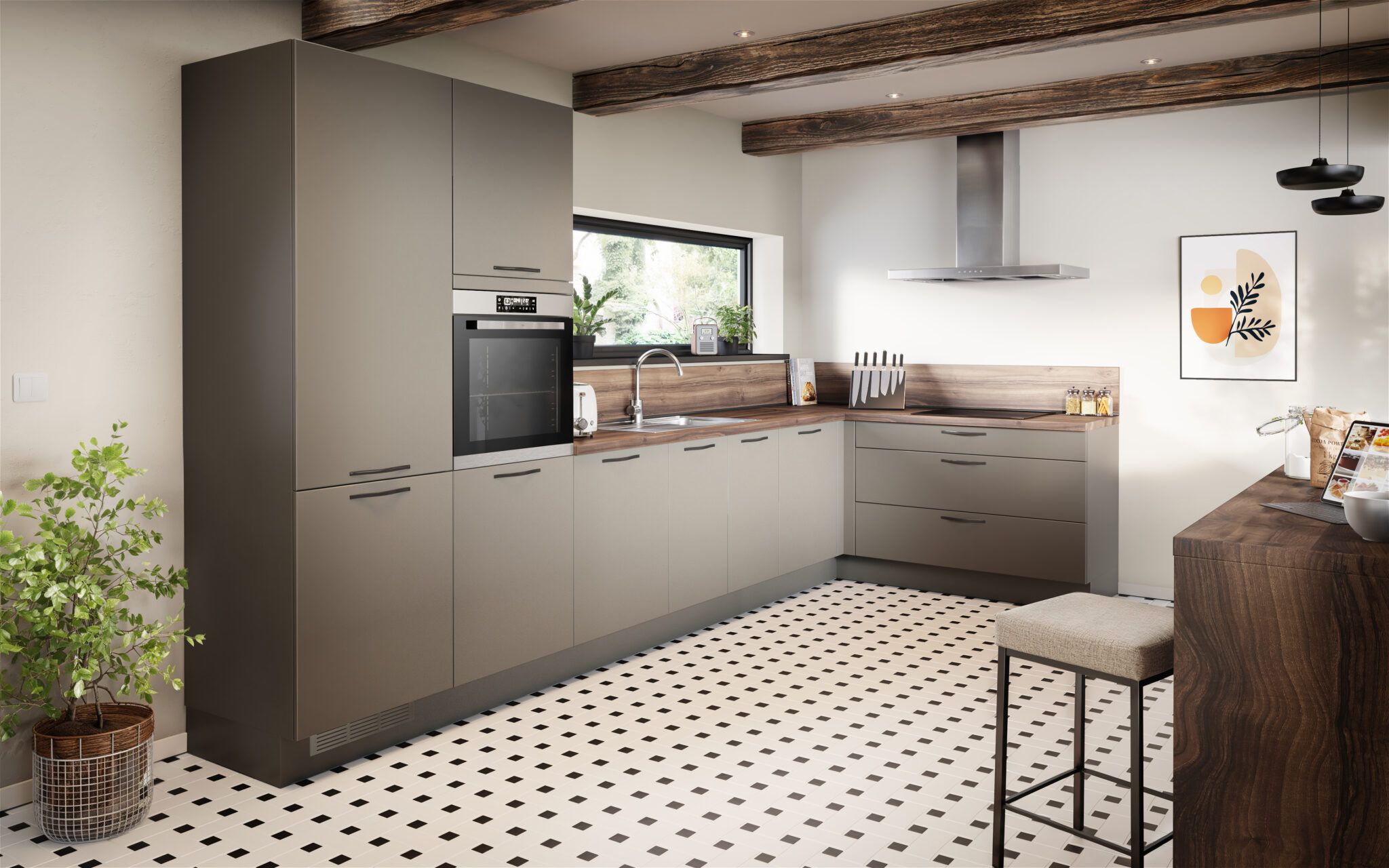 Guillaume recherchait une cuisine pratique, accueillante et bien optimisée, pensée pour les moments du quotidien. Il a choisi de grands casseroliers de 120 cm de long, parfaits pour ranger tout son matériel de cuisine en un clin d’œil. Pour protéger les murs sans alourdir l’ensemble, il a opté pour une protection murale en mi-hauteur, à la fois discrète et efficace. Le plan de travail légèrement arrondi apporte une finition élégante et pratique. Avec èggo, Guillaume a créé une cuisine bien pensée, confortable et fonctionnelle, avec un design accessible.