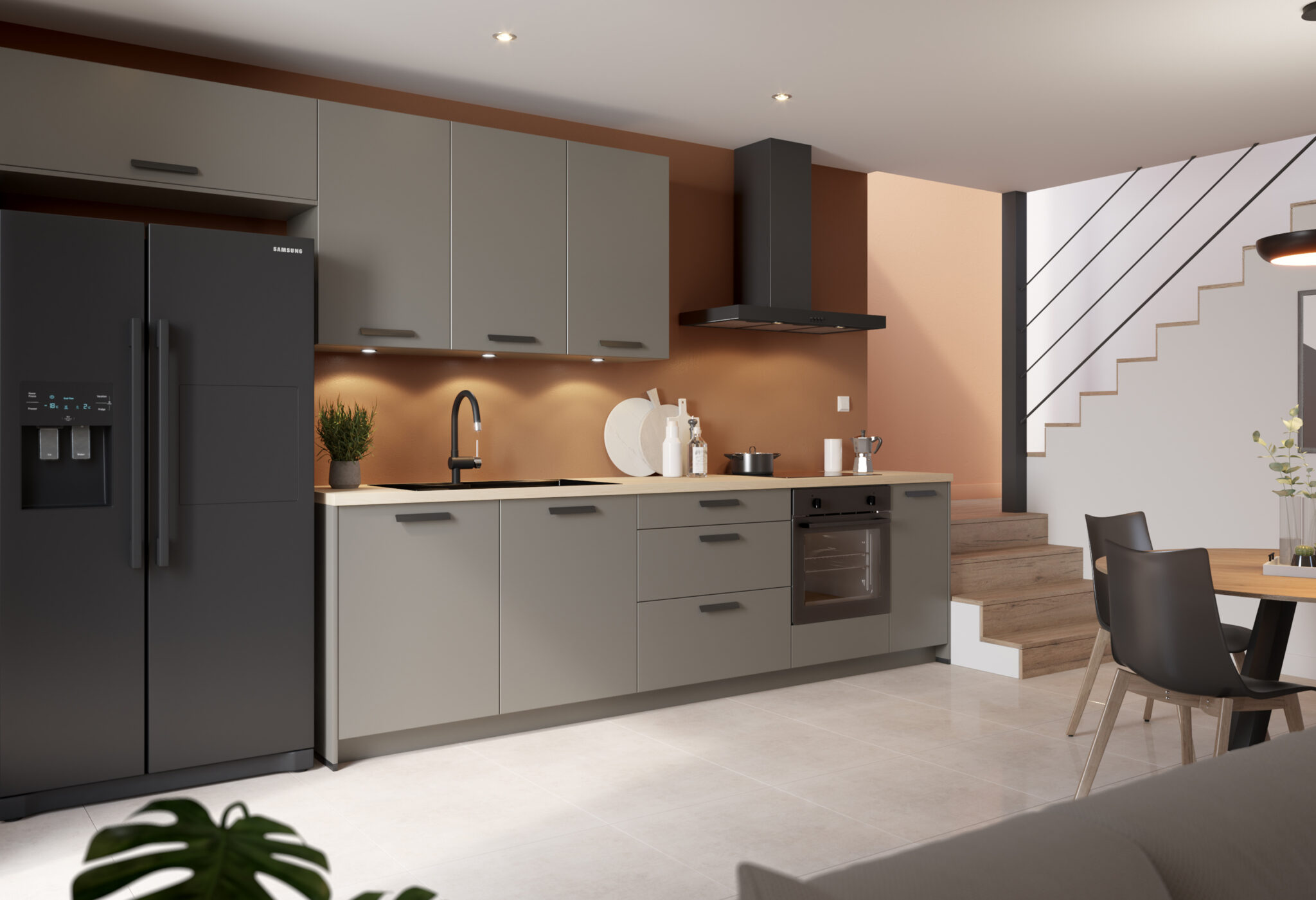 Louise et Augustin ont choisi cette cuisine compacte au style résolument moderne pour sa praticité au quotidien. Malgré sa taille, elle offre de beaux volumes de rangement astucieusement intégrés, optimisant chaque centimètre. Son design épuré et fonctionnel prouve qu’élégance et efficacité peuvent aller de pair. Une belle démonstration de design accessible, pensé par èggo pour les petits espaces sans compromis sur la qualité.